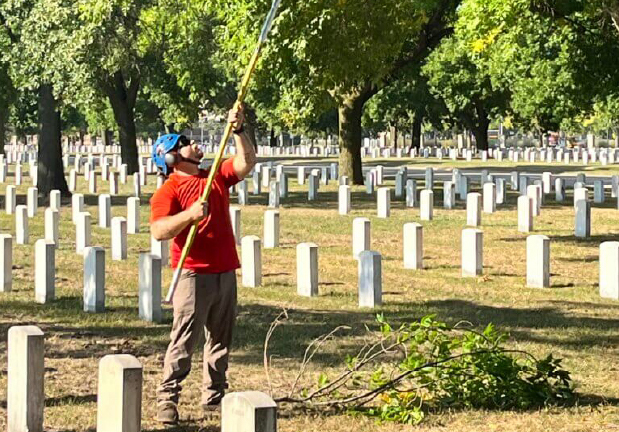For the second year, Vineland participated in Saluting Branches. This marked the 9th year of the event where 4,000 volunteers worked at 100 veteran properties nationwide. An estimated 4 million dollars of services went to the maintenance of trees in our nation’s cemeteries. It’s an opportunity for arborists to come together and contribute our unique skills.
